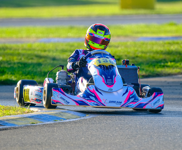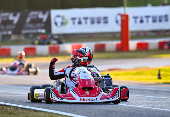 Déjà vainqueur d’une manche, il a creusé l’écart sur ses adversaires une fois installé au commandement de la finale juste après la mi-course. Il s’est replacé 3e dans l’optique de jouer le titre à Lonato, notamment face au Roumain Victor Thomas Gorun (Tony Kart-Vortex), vainqueur à Franciacorta, et au redoutable italien Niccolo Perico (KR-IAME).