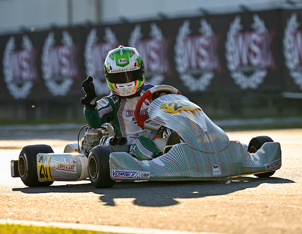Toujours aussi rapide et brillant dans les épreuves de la WSK depuis qu’il court en Italie, Stan Ratajski (Parolin-IAME) s’est battu pour la victoire lors des deux épreuves en Italie. A Franciacorta, il se faisait écarter hors de la piste alors qu’il venait de boucler l’avant-dernier tour de la finale en tête du peloton. Stan a pris une éclatante revanche à Cremona.