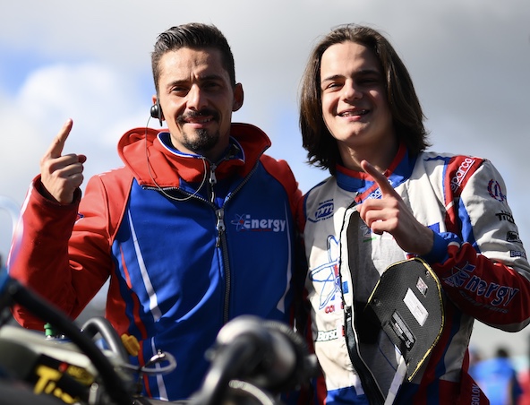 En OK-Junior, pendant que l’Italien Niccolo Perico (KR-IAME) a continué de surfer sur la victoire, Mattis Brageot (Parolin-TM) est remonté 17e. Clément Pollet (KR-IAME) a dû renoncer.