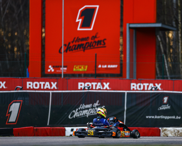 On dit souvent que le KZ est la Formule 1 du karting ! Il est vrai que cette machine a tout pour ravir les pilotes avides de sensations et d’envie de viser le haut niveau du sport automobile. Du 29 janvier au 1er février, Léni Robillot Lagache a dû dompter un moteur sur-vitaminé de près de 50 chevaux, une boîte 6 vitesses, un kart plus lourd de 30 kg par rapport à son ensemble de l’an passé, un freinage sur les 4 roues et des départs arrêtés. Il s’agit de changements loin d’être anodins, même si Léni avait effectué quelques précieuses séances d’entraînements avant de se rendre en Belgique. Mais rien ne remplace la réalité de la compétition…