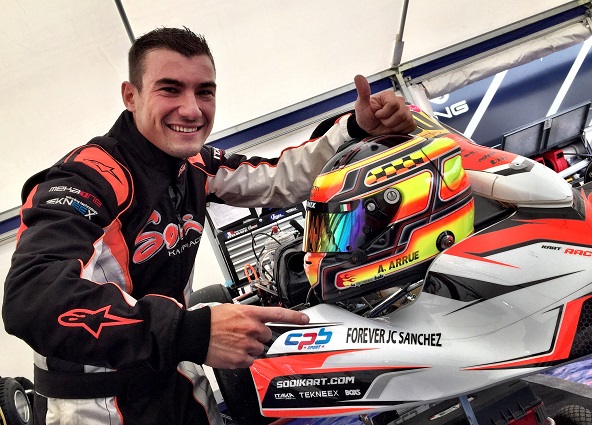 Membre du club du KCPOM, le club longtemps présidé par le regretté Jean-Claude Sanchez, Alexandre Arrue participe cette année à la Super Coupe Internationale de KZ2 à Wackersdorf. Malgré son manque de roulage, puisqu’il n’a plus roulé depuis cette même course en 2016, Alexandre se montre très compétitif au volant de son Sodi-TM du team CPB Sport.
