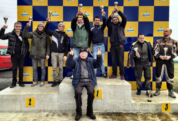 Pour clore cette AG, une course loisir a été organisée sur le circuit de Kartland (photo du podium ci-dessous). Pilotes, partenaires et officiels ont pu s’affronter sur la piste, voire sur les bas côtés pour certains… Un sympathique et convivial moment de bonheur !
