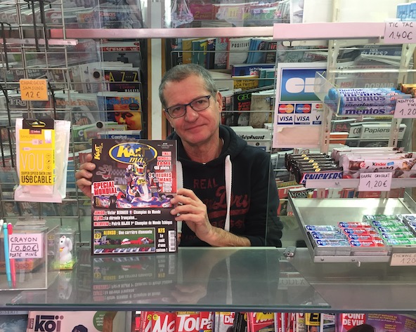 Cela fait quelques jours que le nouveau magazine Kart Mag (numéro 197 de novembre-décembre) est disponible dans vos kiosques, comme le montre ce commerçant installé à Paris, à la Bastille, au pied de la colonne du 14 juillet. Découvrez le sommaire et liens pour retrouver ce magazine en vente en ligne ou par abonnement.