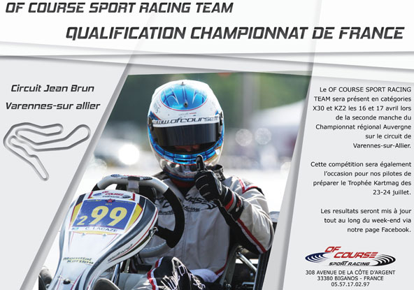 Le-team-Of-Course-Racing-dans-les-starting-blocksL’objectif sera double lors de cette 2e épreuve du Championnat Régional d’Auvergne, spécialement dans les catégories X30 et KZ: viser le podium et préparer avec ses pilotes le prochain Trophée Kart Mag, programmé en juillet sur ce même circuit de Varennes.