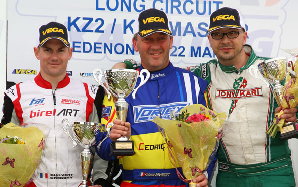 Fort de sa pole position après sa victoire en préfinale devant Vincent Fontenille et Emmanuel Galichon, Grégory Guilvert prenait d’entrée les commandes de la finale de la première épreuve du Championnat de France Long Circuit en KZ2 Master.