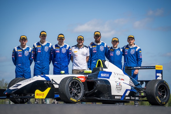 Patrick Lemarié entouré des finalistes du Volant Feed Racing 2025