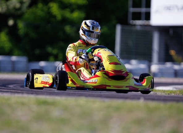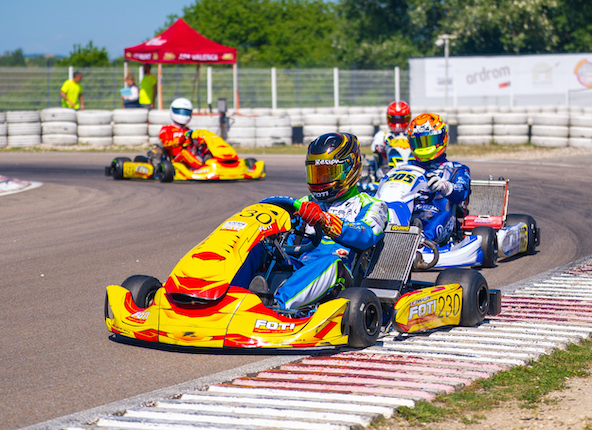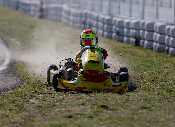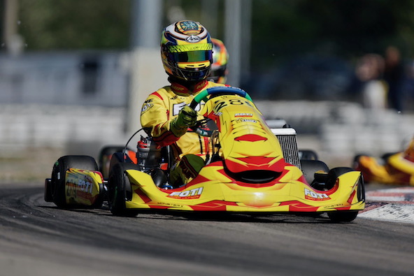 Vainqueur en KZ2 à Lavilledieu, Malo était tout près de gagner encore dans ce Championnat, mais en Senior ! Parti 3e en finale, il a fait étalage de la performance du châssis Monster K en IAME. Un petit accrochage lui a fait perdre le contact avec le leader qu’il espérait doubler, mais Malo a fait sensation à Valence.