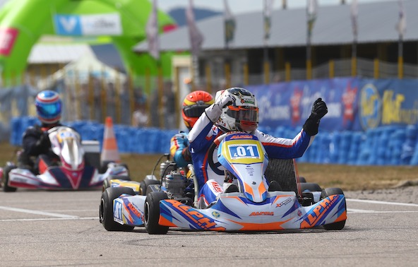 Venu du sud de la France, Eric Chapon (Alpha) n’a pas tardé à prendre ses marques sur le circuit de Mirecourt. Auteur du meilleur temps de la dernière séance d’essais libres, il confirmait en réalisant la pole position devant un ancien ténor du Rotax et DD2, Damien Vuillaume (Parolin), pendant que Willy Runget (Tony Kart) prenait le leadership en Gentleman.