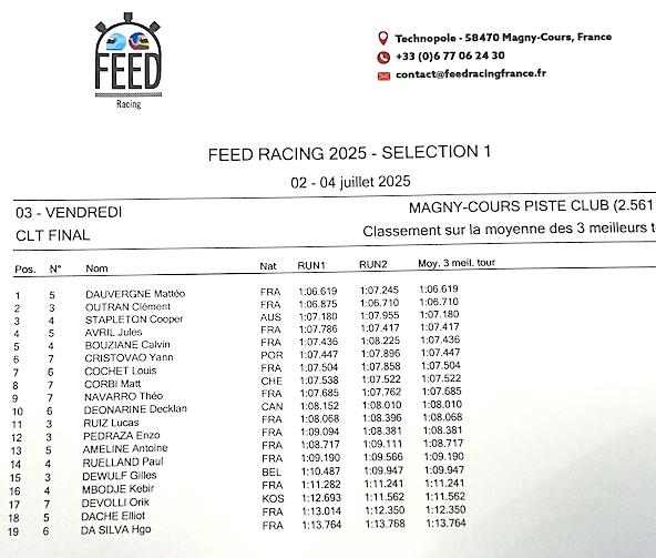 En cette année 2025, un jeune pilote de la catégorie Nationale aura l’occasion de gagner à son tour son stage de pilotage F4 chez Feed Racing pour 2026, d’une valeur de 12440 € HT. Après l’Open Kart Mag de Salbris et le Trophée Kart Mag à Varennes, beaucoup de prétendants peuvent encore gagner et il peut se passer beaucoup de choses lors des deux dernières épreuves: Kart Cup à Mirecourt (30-31 août) et Kart Mag Festival (1-2 novembre).