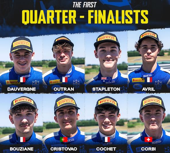Après une brillante progression et d’excellents temps chronos au volant de sa monoplace, Matthéo s’est qualifié pour les quarts de finale. C’est avec une grande motivation qu’il retrouvera pour la suite du Volant d’autres jeunes pilotes, avec de nombreux kartmen parmi eux. On peut citer les Français Louis Cochet, Jules Avril, Clément Outran, Gabriel Benecchi, Mathys Saura-Pictet, Valentin Beauvois, Danny Le Friec ou Alexis Storksen. D’autres espoirs viendront les rejoindre, car les qualifications ne sont pas encore finies…
