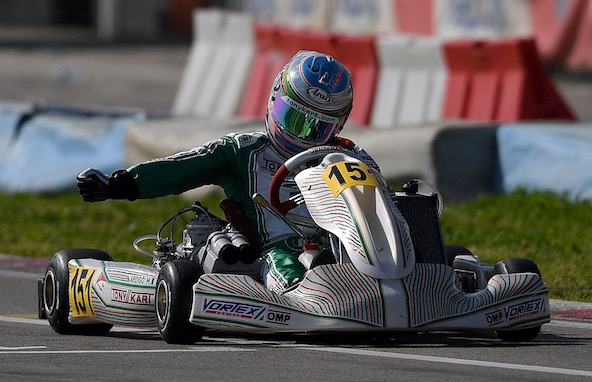 Irlando a pourtant tout donné, démontrant sa détermination en s’imposant en préfinale devant Ardigo. Mais l’Italien de chez Tony Kart était bien le plus fort en finale, Irlando n’a rien pu faire. Derrière, Patrik Hajek (Kosmic-Vortex) passait Paolo De Conto (CRG-TM) dans l’ultime tour pour le gain du podium, mais De Conto conservait sa 3e place au championnat.